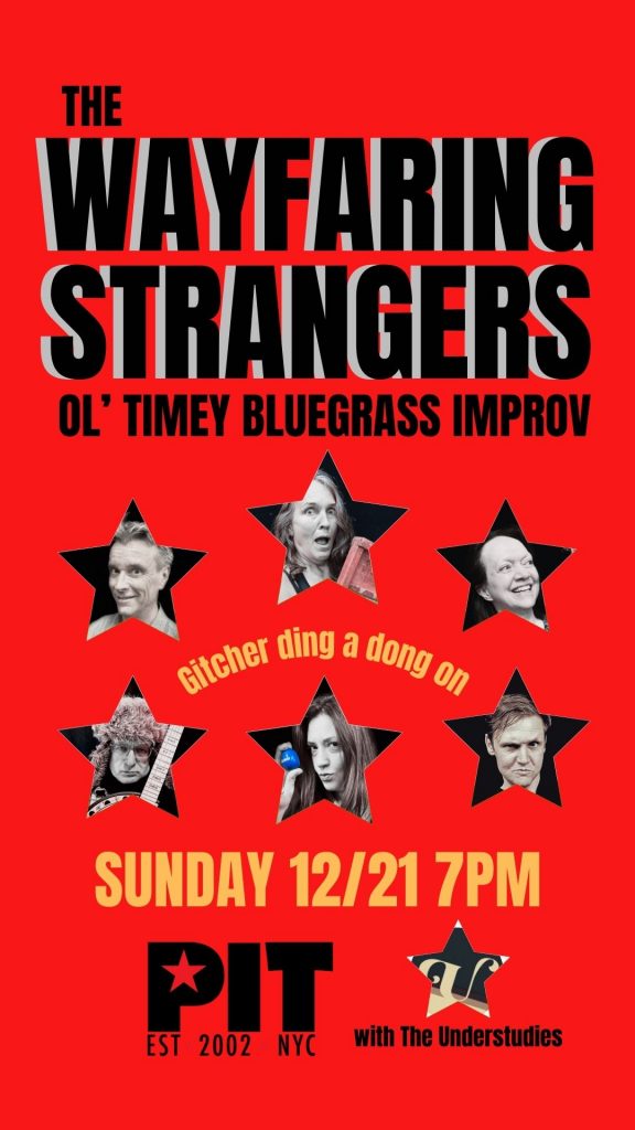 Join Theater of the Apes at The PIT every month for The Wayfaring Strangers, a fully improvised musical featuring old-timey bluegrass tunes and a rotating cast on traditional instruments like banjo, guitar, fiddle, mandolin, washboard, egg shakers and kazoo …